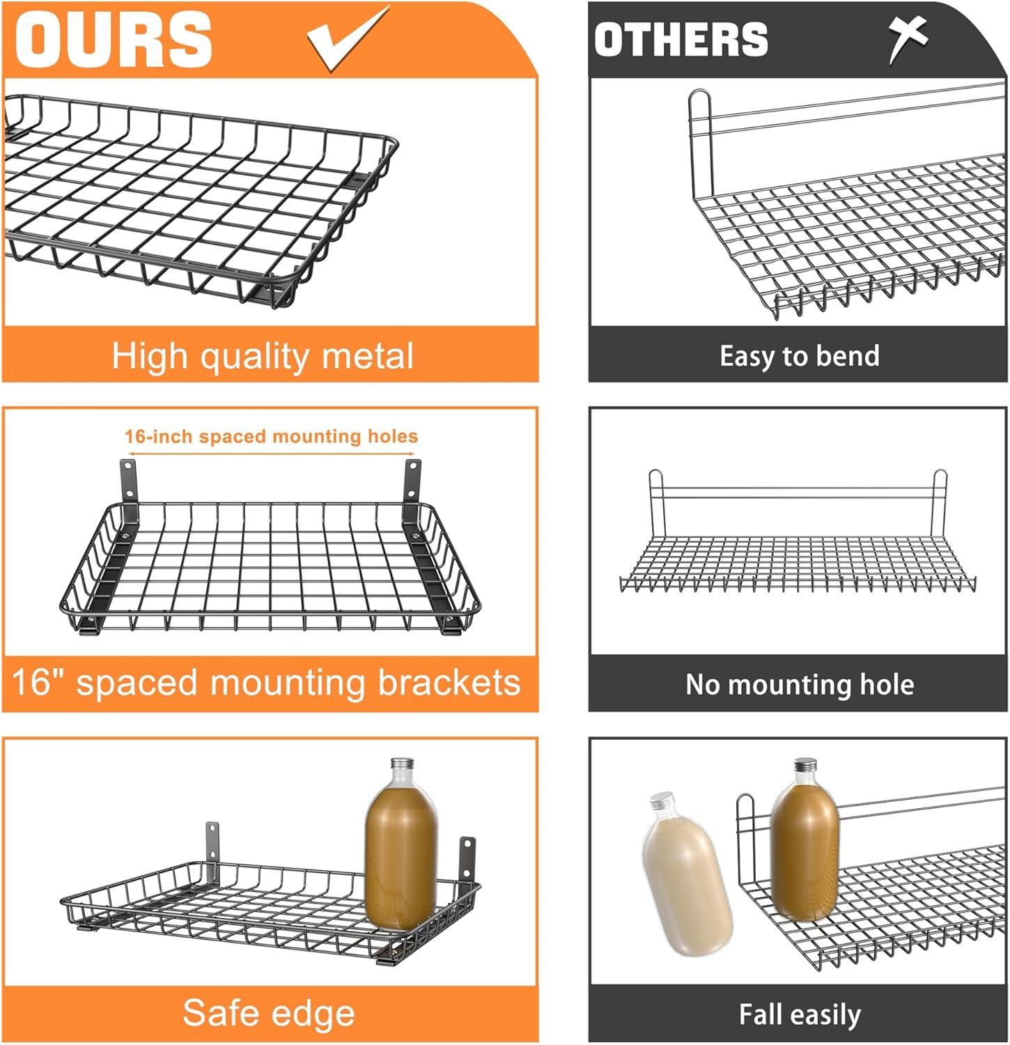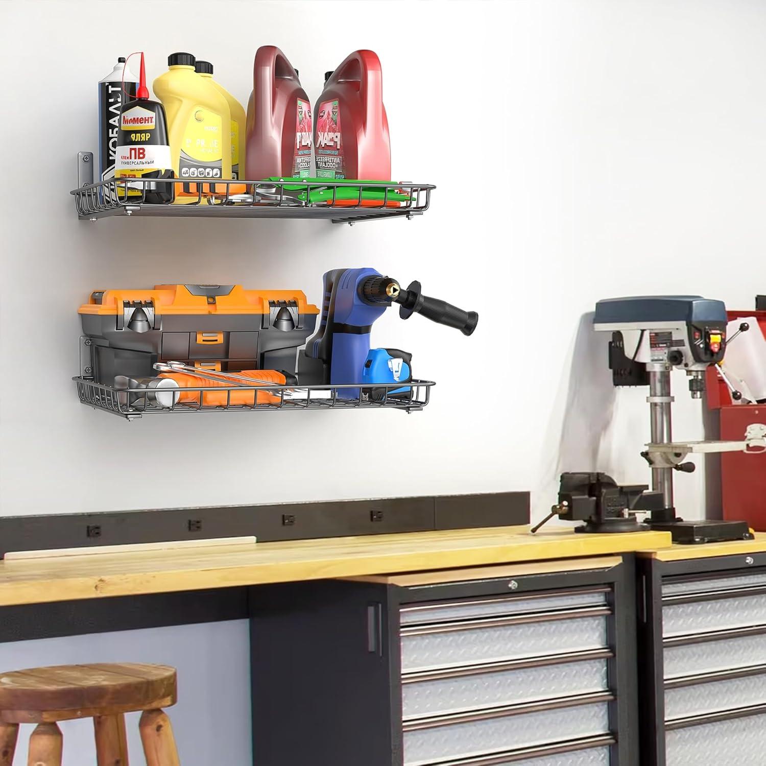 Sturdy Metal Shelves: Made from high-quality steel with a powder-coated finish, these garage wall shelves hold up to 60 lbs per shelf