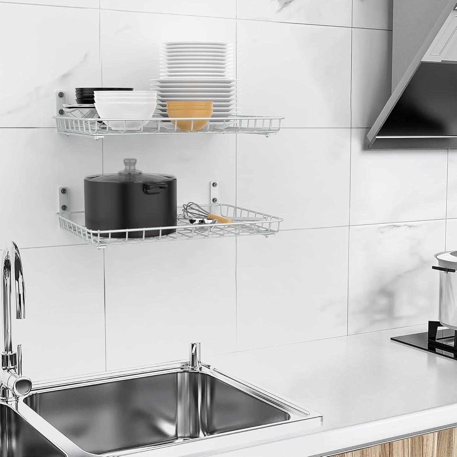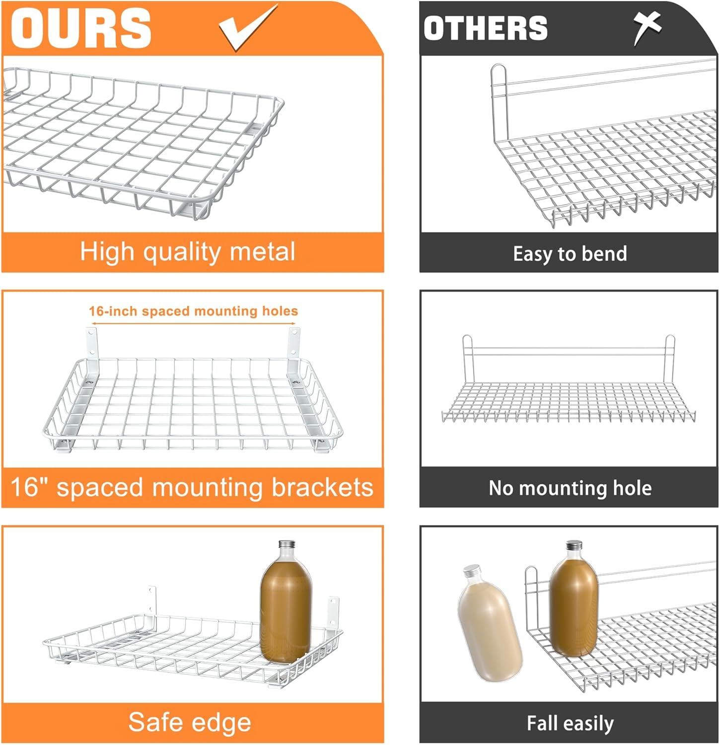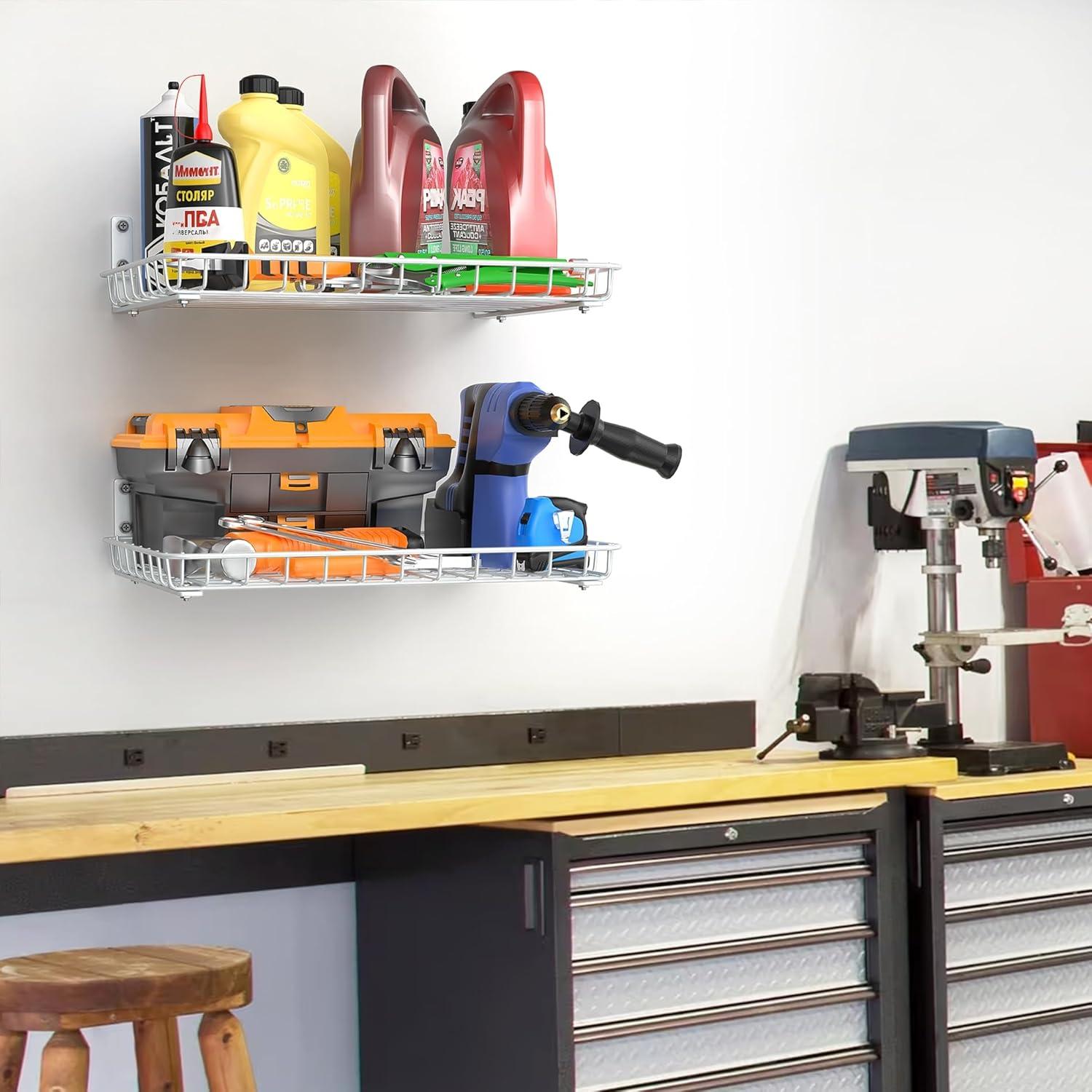 Sturdy Metal Shelves: Made from high-quality steel with a powder-coated finish, these garage wall shelves hold up to 60 lbs per shelf