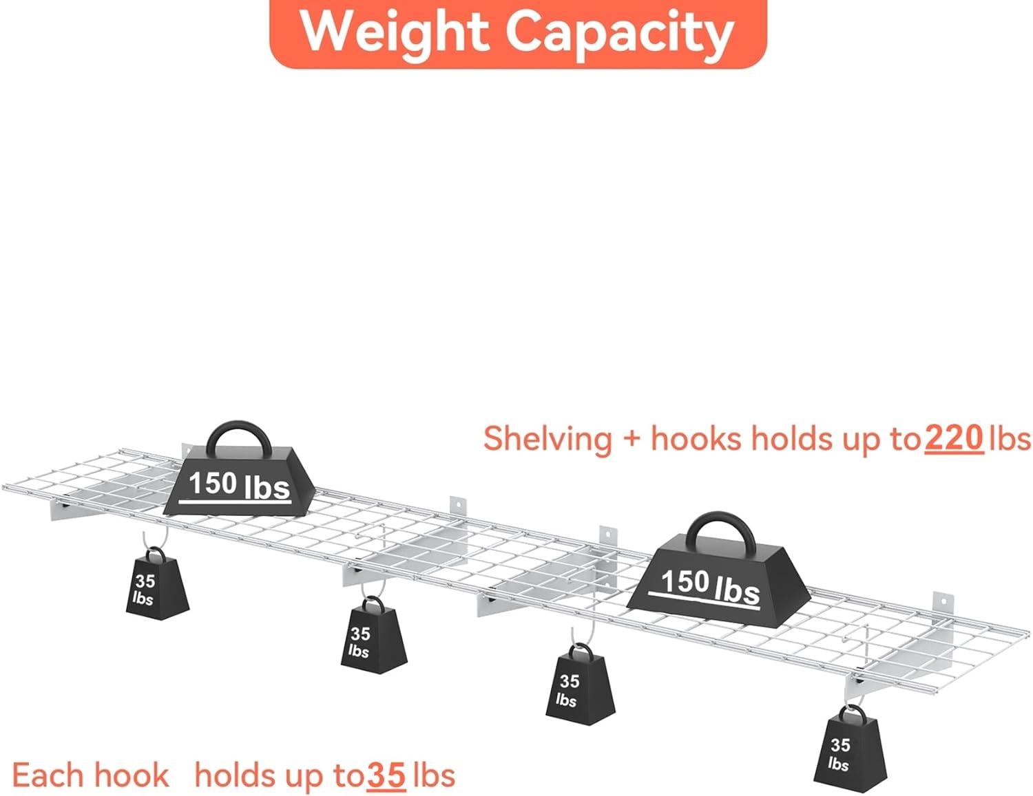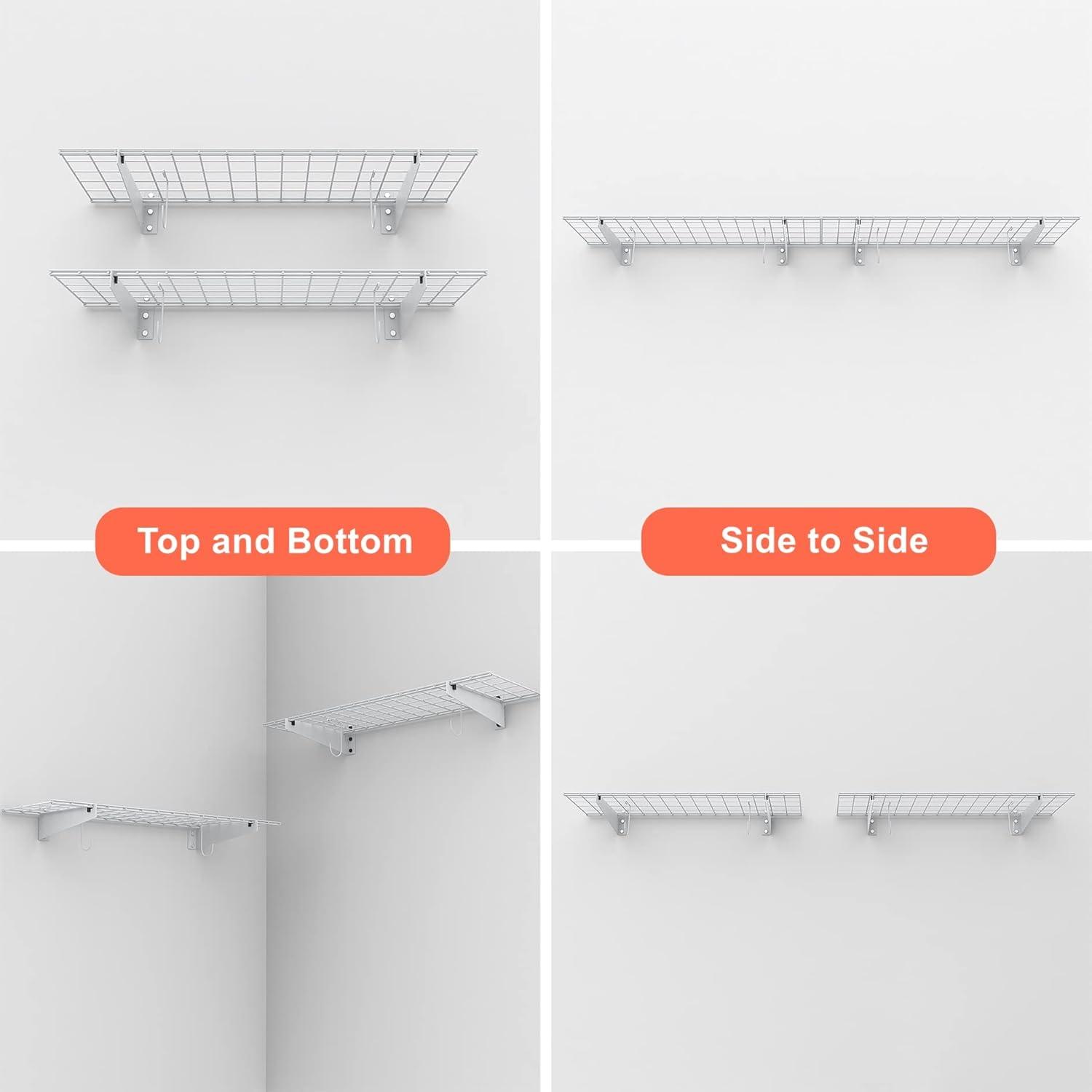 Sturdy Shelves: Our garage wall shelves are constructed from high quality steel with a powder coated finish. Holds up to 65lbs per shelf.