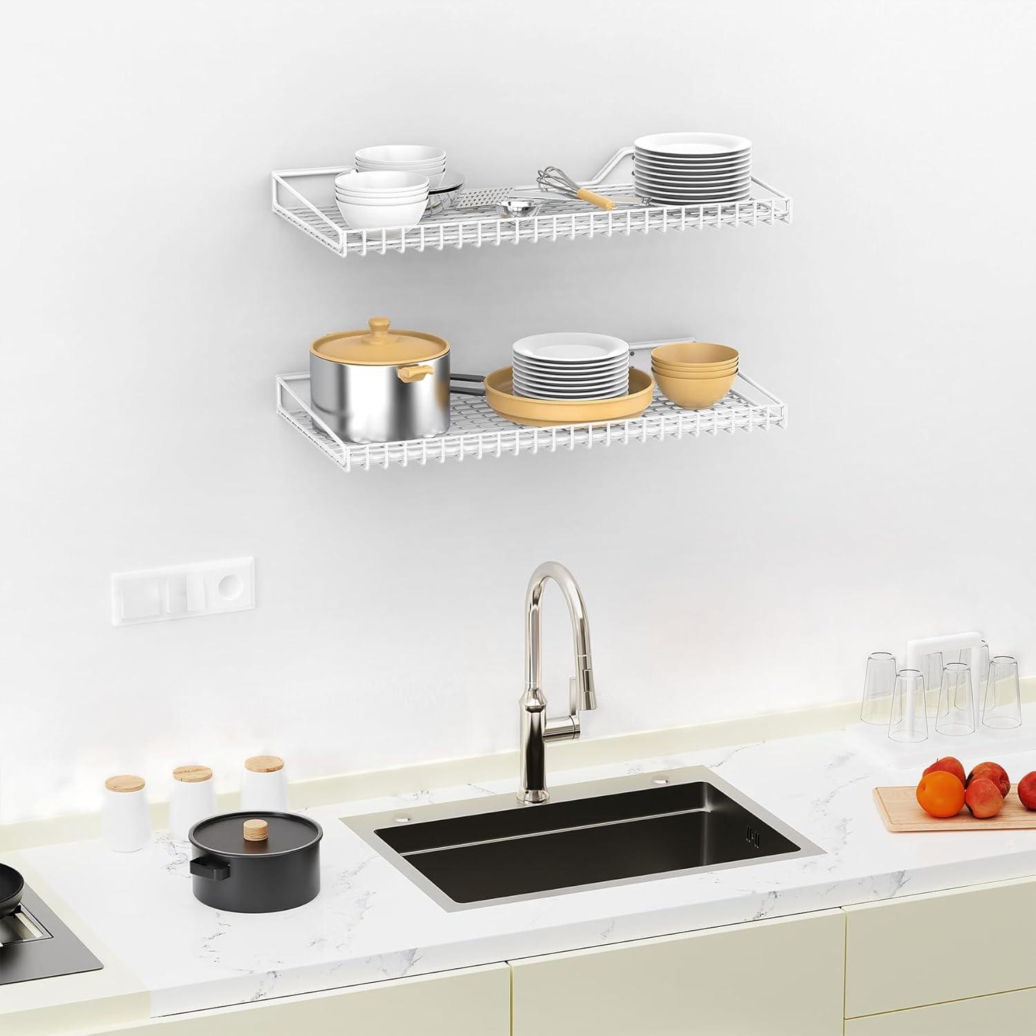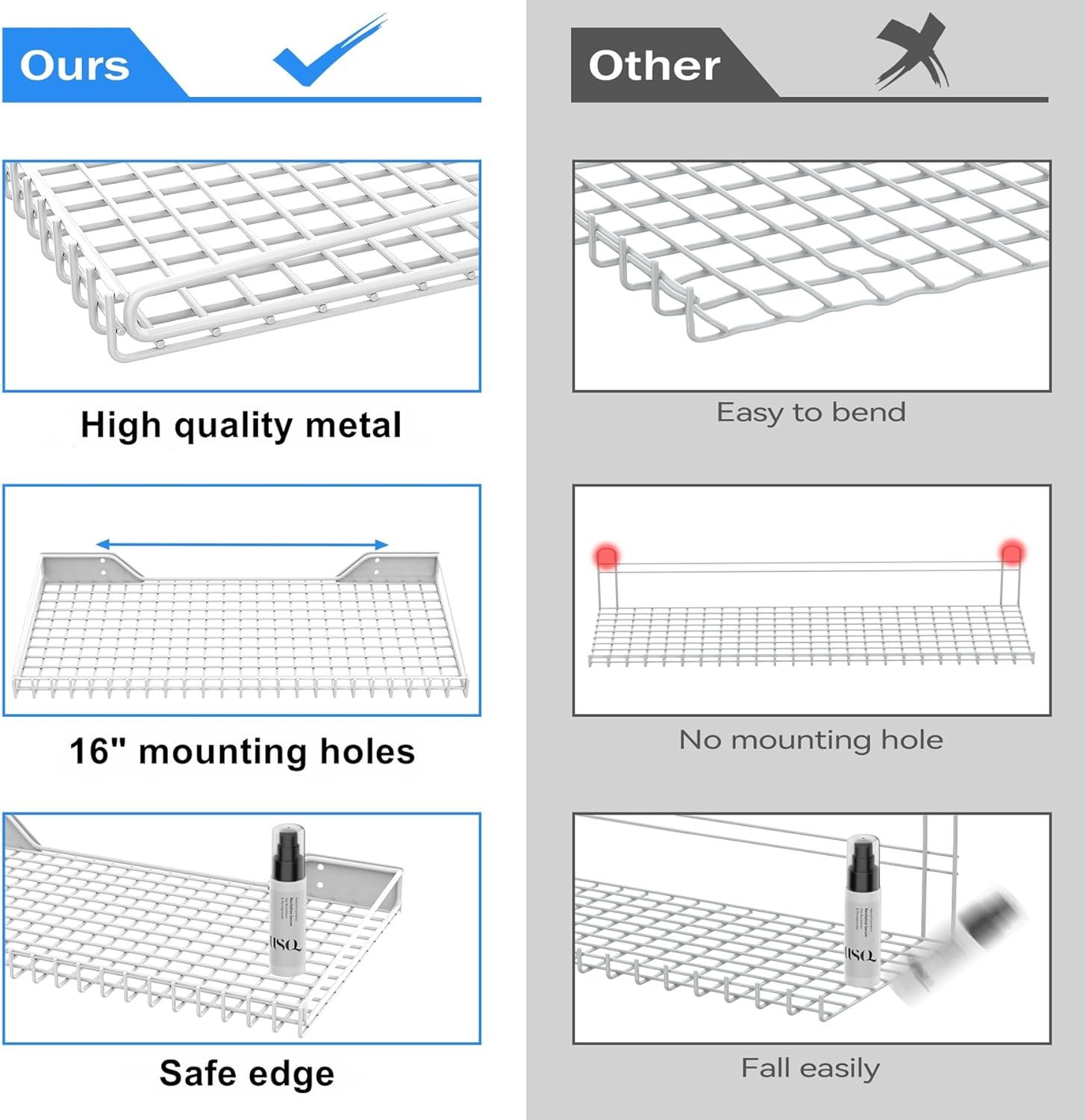 Secure Storage: Wall mounted shelves feature folded edges to securely hold items in place. The folded edge design prevents stored objects from sliding off.