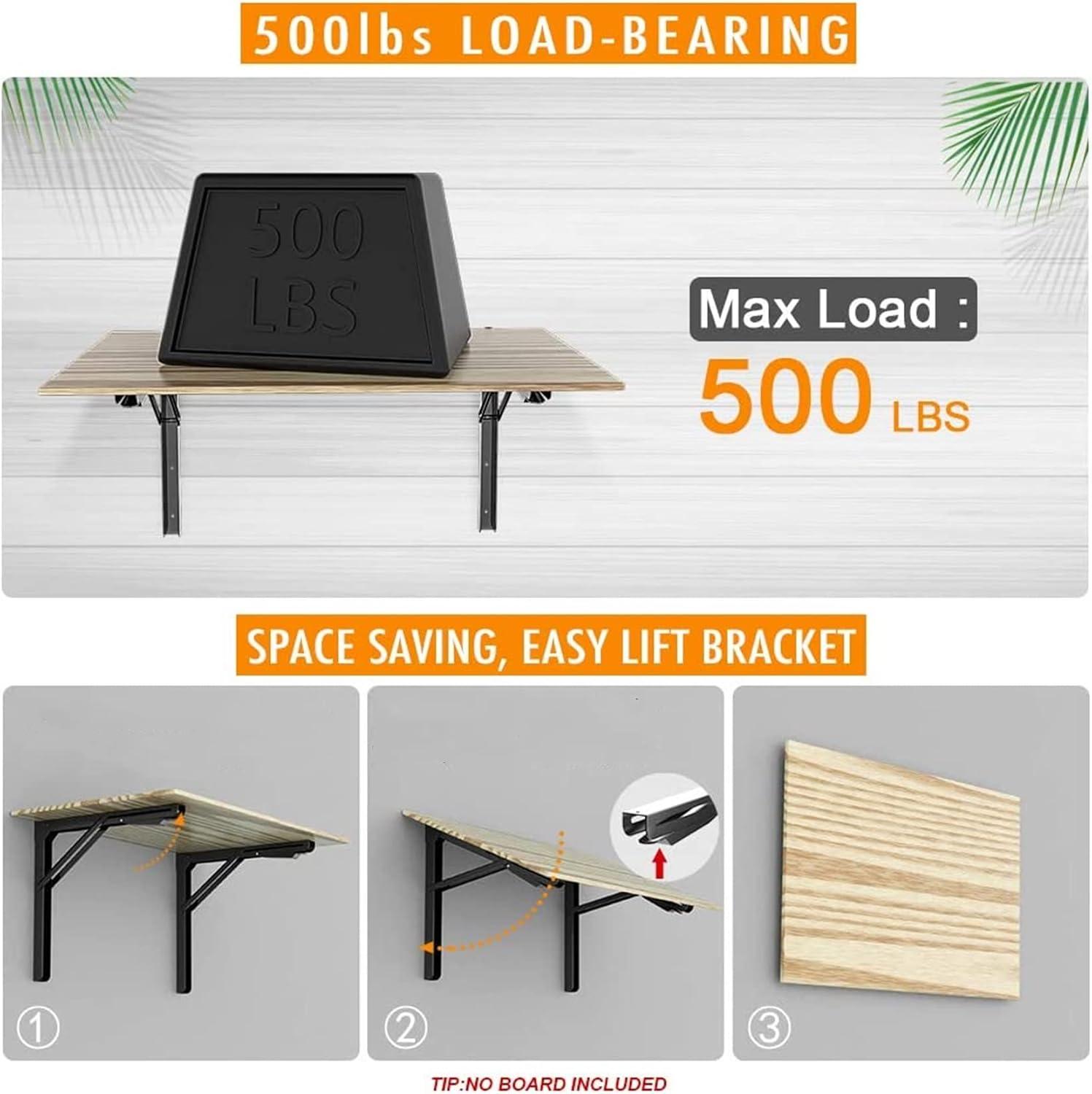 SPACE SAVING& PORTABLE: When this shelf folding brackets isn't in use, it can be easily converted to a down position in just a few seconds, occupying less than 4 inches of garage space, perfect for taking it with travel