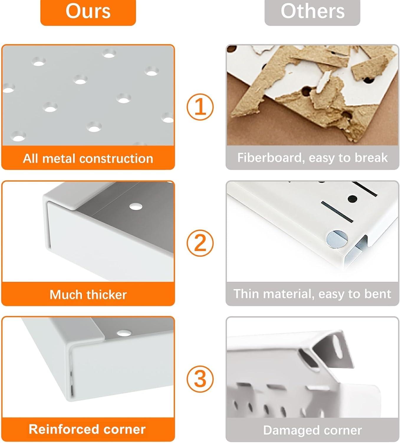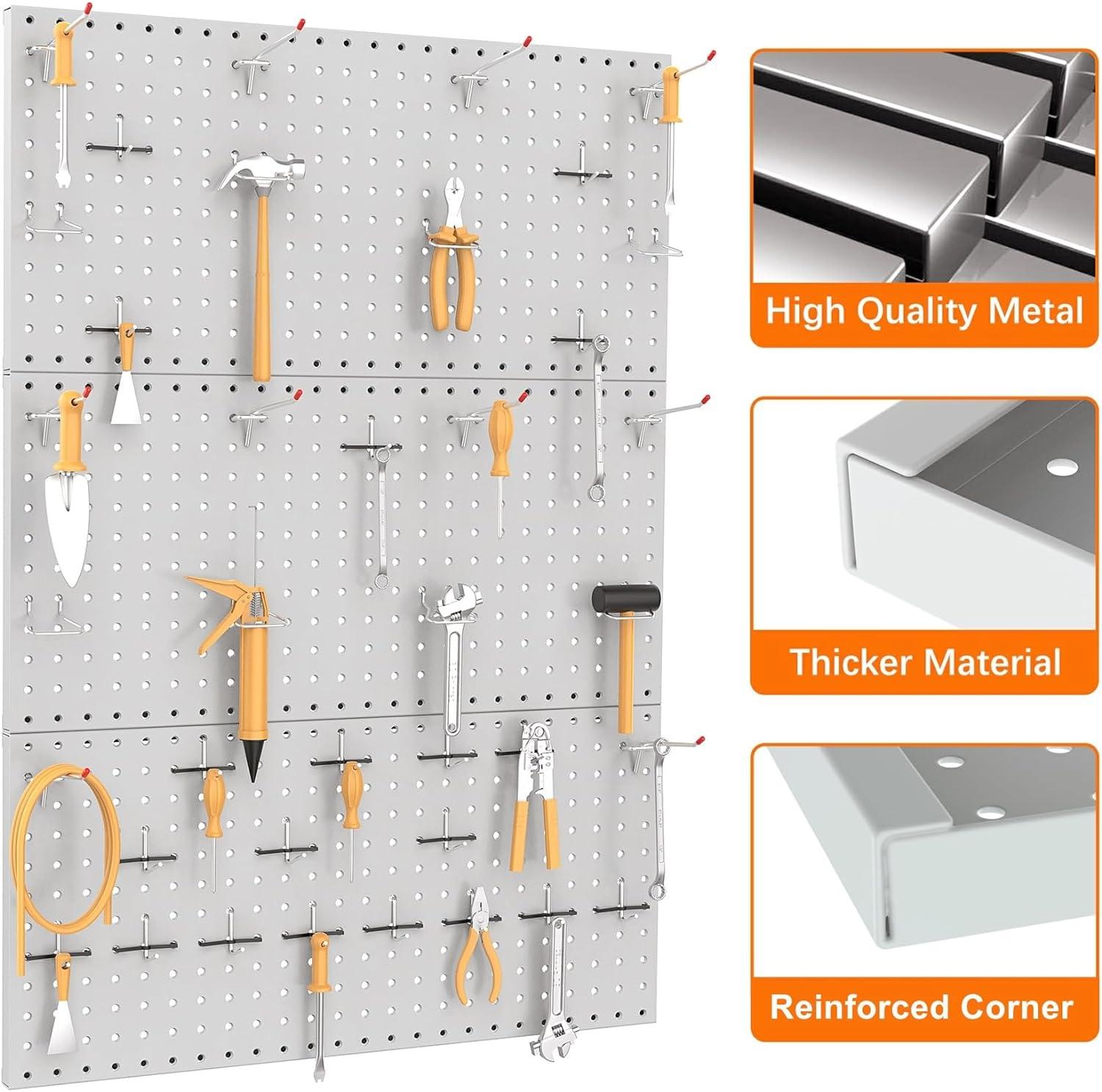 Built to Last: Pegboard panels are made of high quality steel with powder coated finish, sturdy, scratch resistant and easy to clean. Will last forever, never warp and deteriorate. The metal pegboard will hold the weight of all your tools. You won't be disappointed
