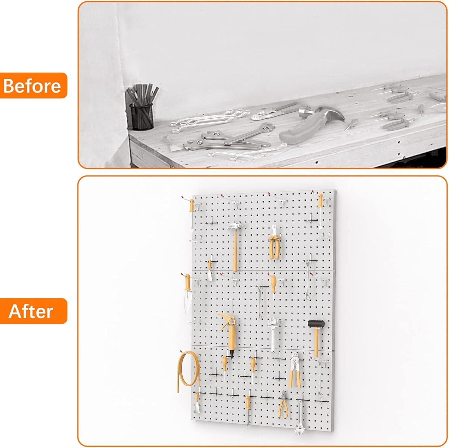 Space & Time & Money Saving: This Pegboard wall organizer system is a great way to clean up a messy workbench and drawer, keeps all your tools organized and accessible. Stop losing your small tools, this product saves your space, time and money