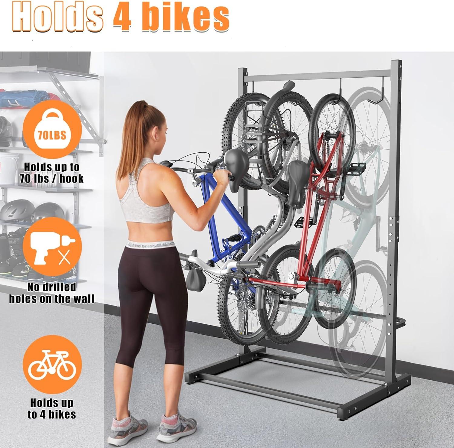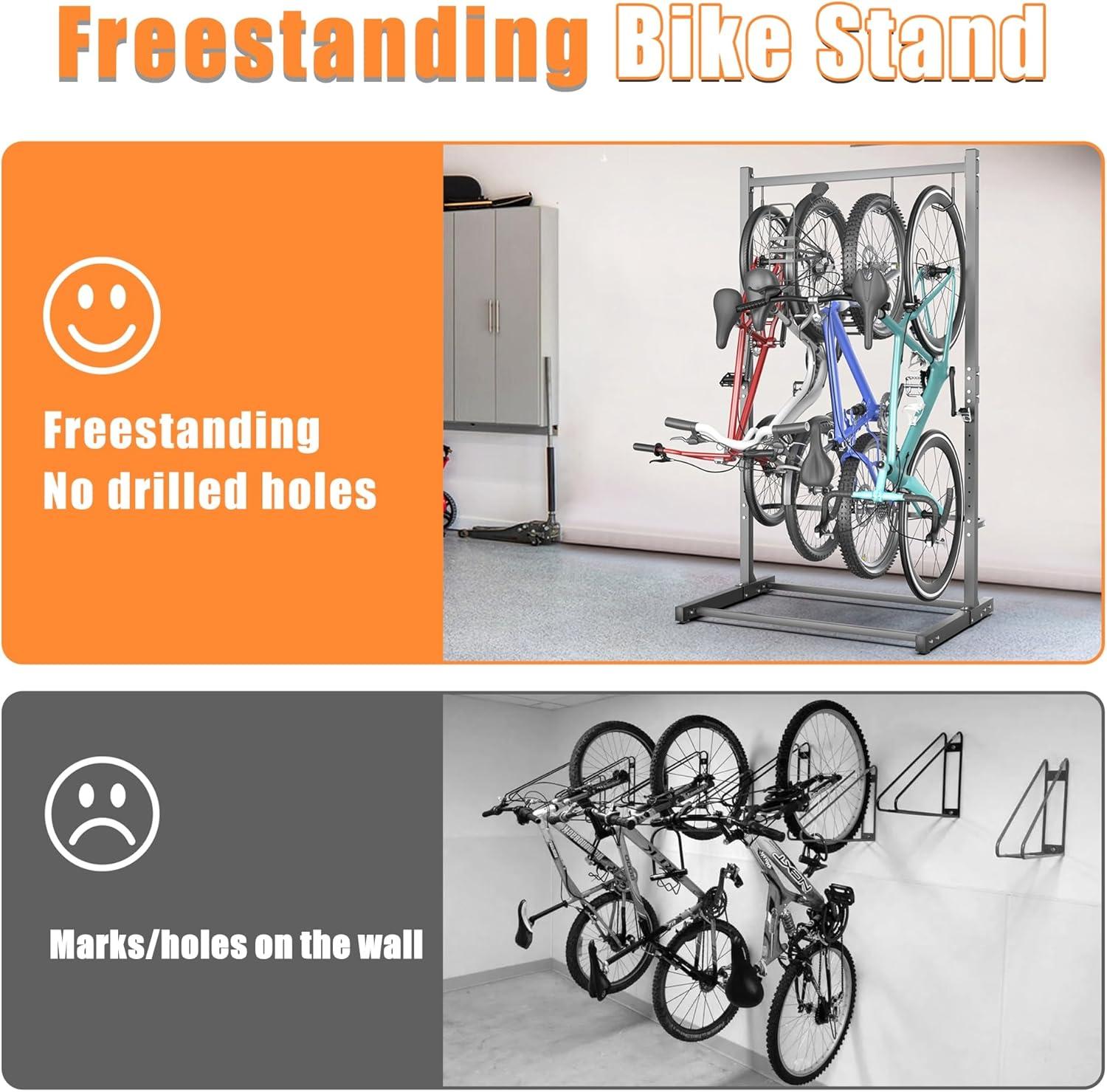 Freestanding Bike Storage Rack: Holds up to 7 bikes without drilling or wall-mounting. Ideal for garages, sheds, or apartments where wall installation isn't an option