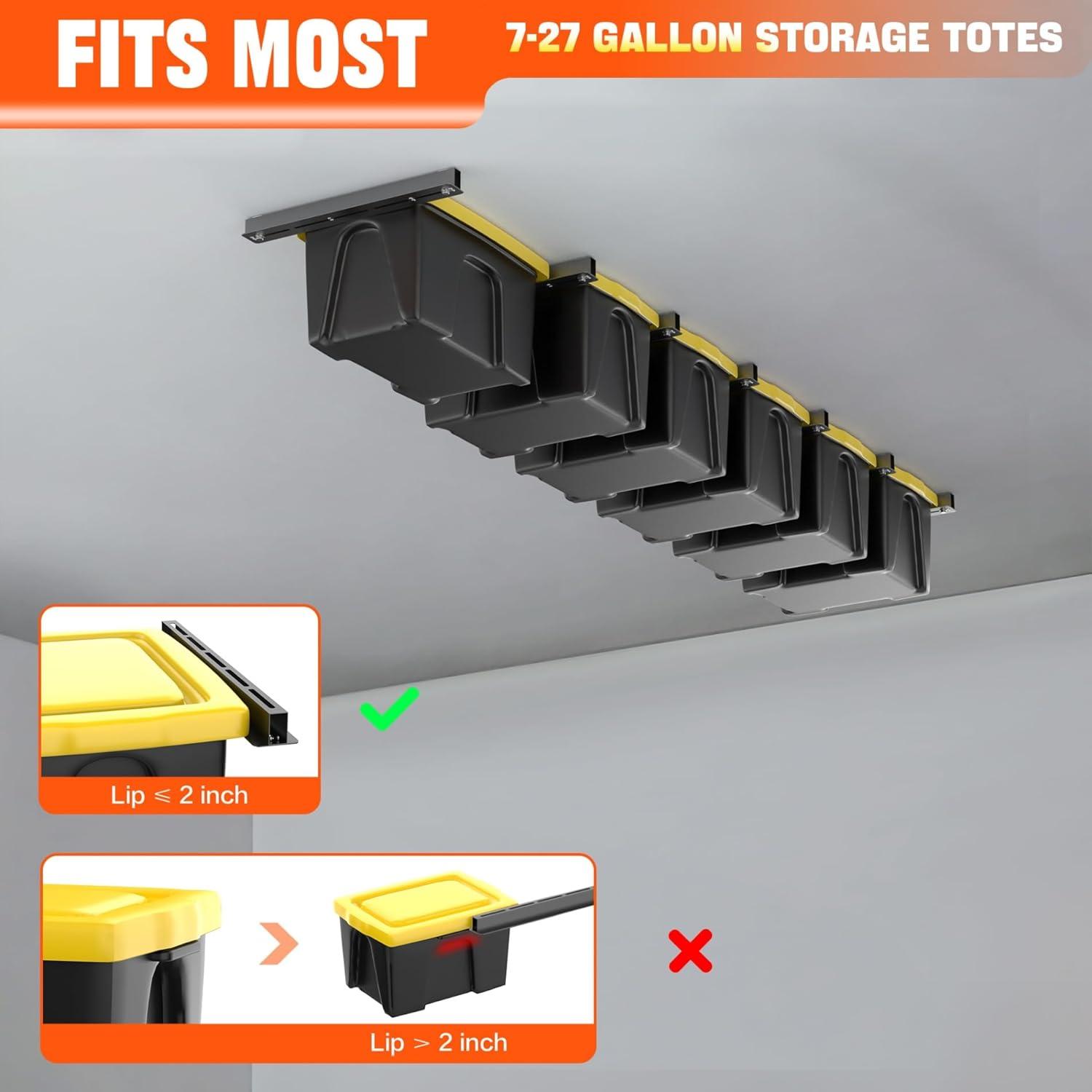 Convenient Overhead Storage: Mounts securely to 16″ or 24″ ceiling joists for a quick, hassle-free installation. Designed to fit 7-27 gallon storage bins (not included), creating a straightforward solution for overhead storage