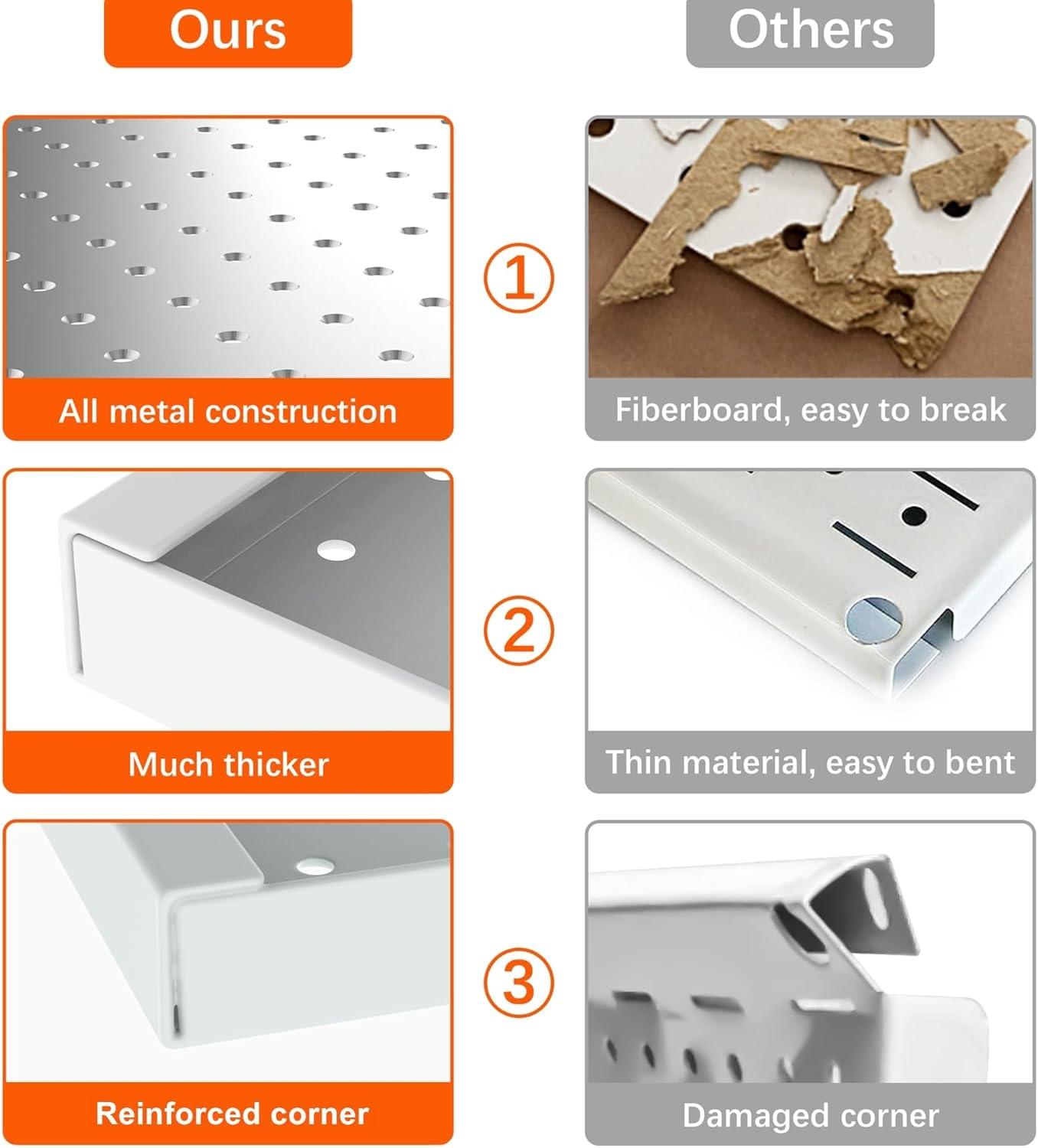Built to Last: Pegboard panels are made of high quality steel with powder coated finish, sturdy, scratch resistant and easy to clean. Will last forever, never warp and deteriorate. The tool pegboard will hold the weight of all your tools
