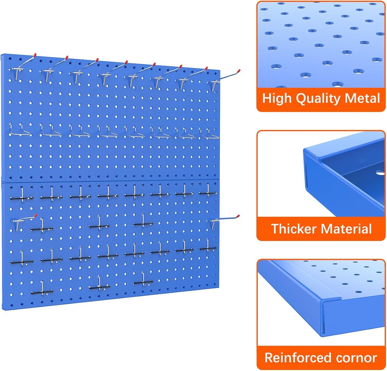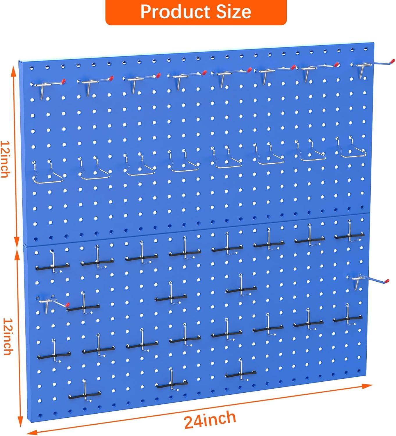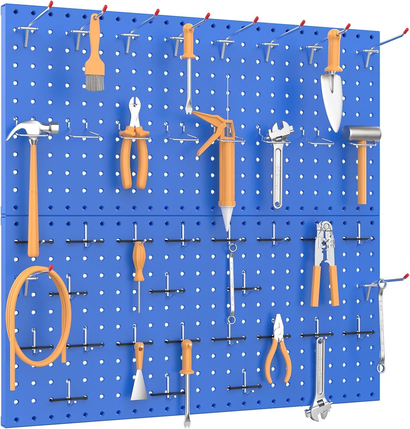 TORACK Metal Pegboard Wall Organizer 24" x 24" or 12" x 48", 70 PCS Tools Storage Pegboard for Garage Tool Organizer Peg Board with Pegboard Hooks for Workbench(Black)(Blue)
