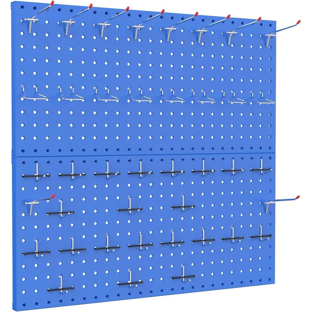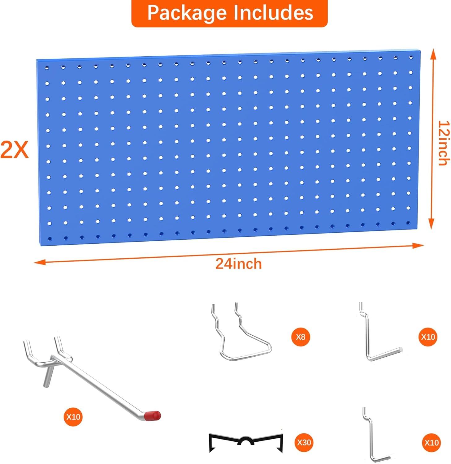 TORACK Metal Pegboard Wall Organizer 24″ x 24″ or 12″ x 48″, 70 PCS Tools Storage Pegboard for Garage Tool Organizer Peg Board with Pegboard Hooks for Workbench(Black)(Blue)
