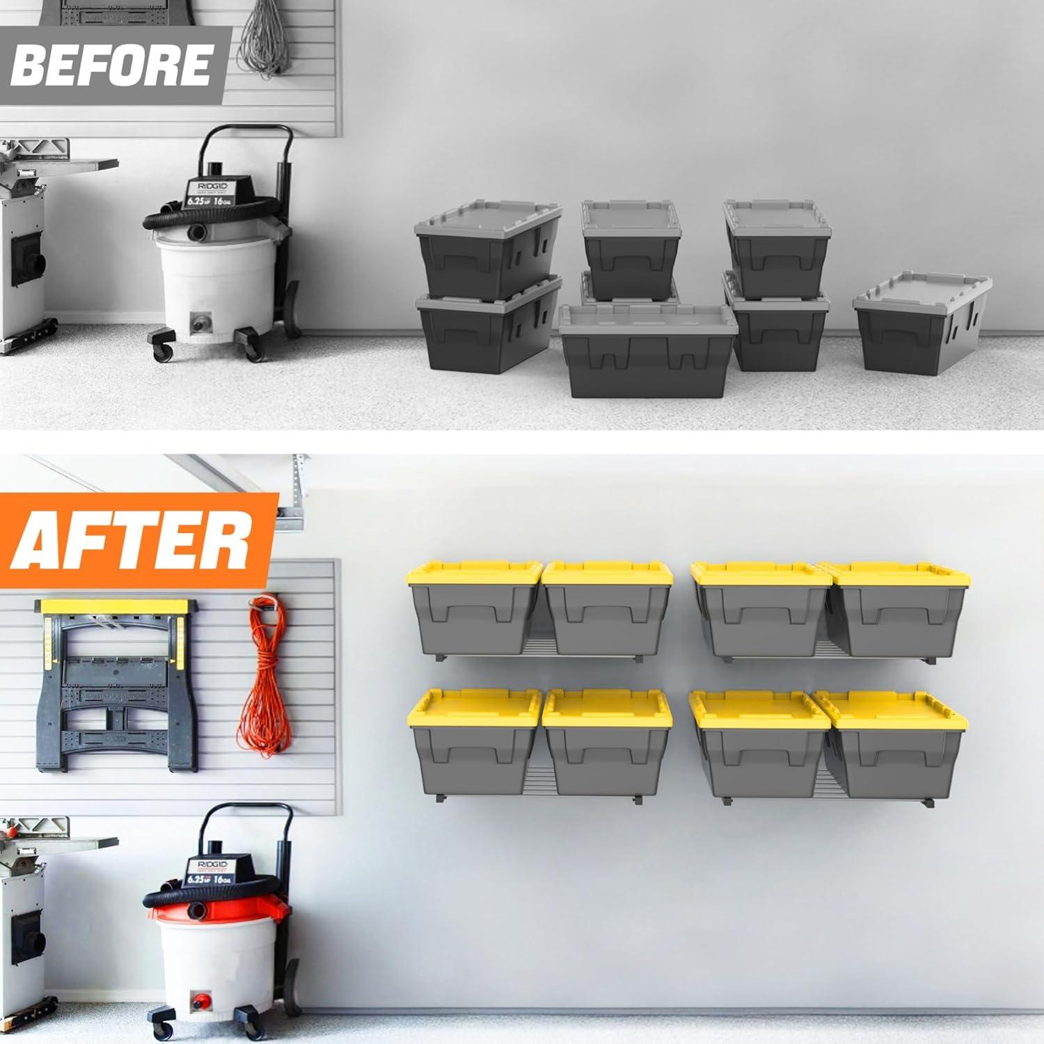 Space-Saving Wall Design: Lifts totes off the floor to free up valuable garage or basement space, keeping your area cleaner and easier to access