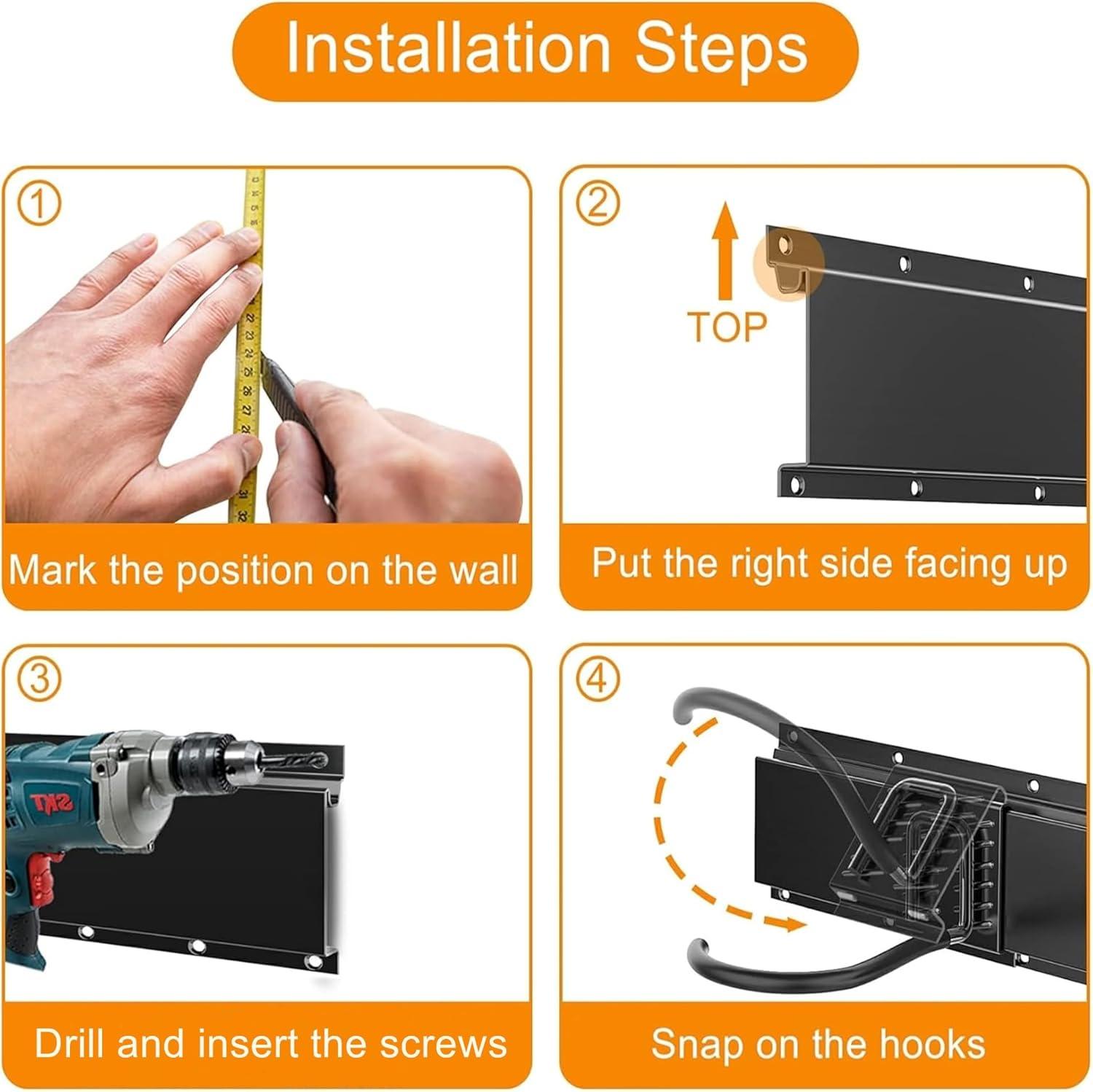 Easy to Install: Bike garage rack has pre-drilled holes fit 16″ stud spacing. Includes instructions and hardware make setup quick. Bike hooks snap on effortlessly for simple use